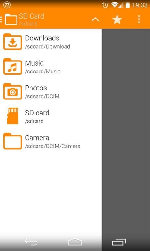 Все новые файловый менеджер предназначен для простоты использования и красивый интерфейс. Она может похвастаться способностью к папкам закладки, добавить файлы и папки ярлыки для домашнего экрана, и использует преимущества прозрачных баров Android KitKat в.