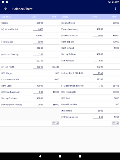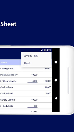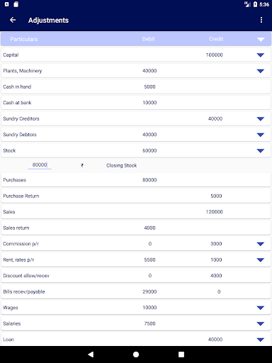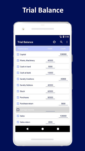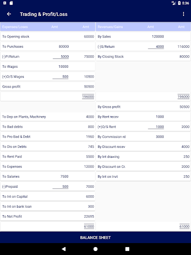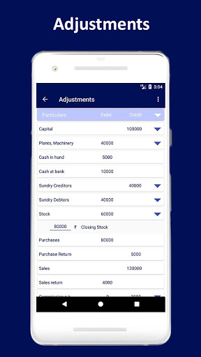 Final Accounts is an app which is capable of creating Trading and Profit/Loss Account and Balance Sheet automatically with Trail Balance and Adjustments. Its simple user interface allows you to enter Credit and Debit amount in Trial Balance. If total Debit and Credit amount are matched it will get highlighted. Next, enter Adjustments amount by tapping on down arrow. Now your work is done, tap on Trading & Profit/Loss and Balance Sheet for your result.