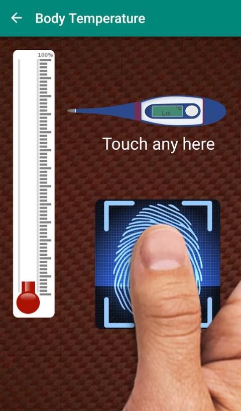 Это шалость приложение, разработанное для развлекательных целей. Сенсорный экран мобильного телефона никогда не может измерять температуру. Пожалуйста, обратитесь к врачу в случае высокая температура тела. Удачи с этим приложением.
