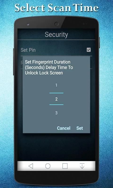 Это приложение имитирует сканирование пальца печати, чтобы обеспечить ваш экран мобильного. Сканирование имитируется, но все же его эффективным, как при запуске сканирования, поместив палец, вы должны освободить свой палец в секундах, установленных вами в настройках. Предположим, что вы установили 3 секунды, то вам необходимо освободить свой палец от сканера в точных 3-х секунд, чтобы разблокировать. Так что никто другой не может легко открыть экран блокировки.