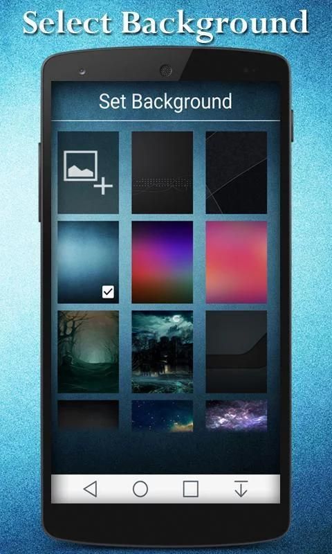 - Вы можете установить различные фоны от заданного фона по умолчанию в приложении или выбрать свою собственную фотографию с мобильного галереи.