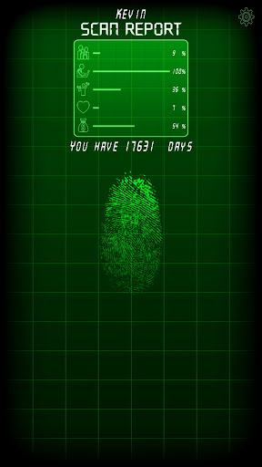 Введите свое имя и дату своего рождения, затем поставьте палец на экран, чтобы начать сканирование ...