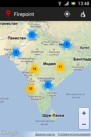 Firepoint позволяет следить за пожарами по всему миру, используя Google Maps и ежедневно обновляемые данные пожаров.