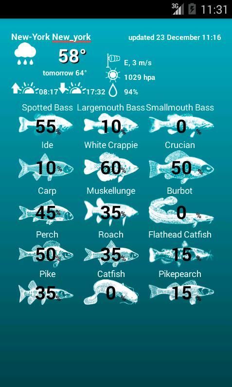 Знание о том, прогноза погоды на рыбалку каждого вида рыбы плюс данные о прогнозе погоды в вашем регионе позволит высокая степень вероятности предсказать рыбалку.