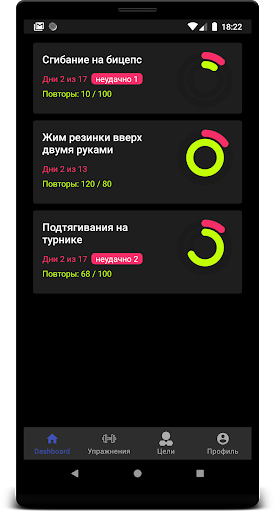 Ежедневно вы будете уведомлены о предстоящих упражнениях (если они есть на этот день, конечно). Вам доступен ежедневный график выполнения упражнений, из которого вы узнаете о своих минимумах и рекордах. Также вам доступна общая статистика челленджа, которой вы сможете поделиться с друзьями.