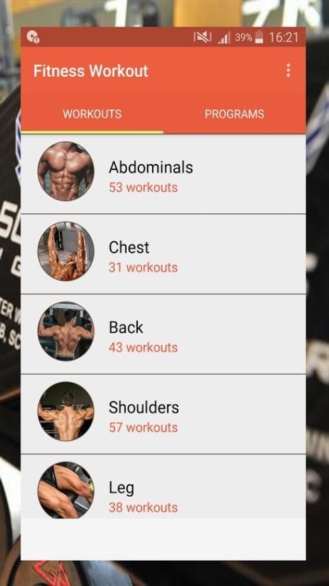 - категоризации упражнение (бодибилдинг, абс, грудь, ноги, плечи, спина, бицепсы, трицепсы и ловушка).