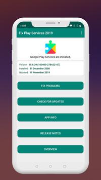 Fix Play Services 2020 (Update) shows the details of Google Play Services like its Version, Installed Date and its Updated Date. Then it fixes all the problems step-by-step.