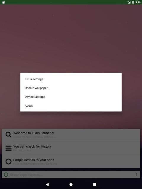 Fixus Android Launcher помогает пользователям найти наиболее часто используемые функции, с помощью простого поиска.