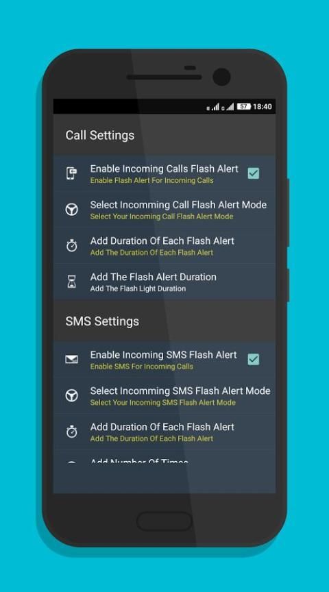 Flash-оповещения приложение напоминает вам о входящем вызове, сообщения (SMS) и уведомления с мерцании света с использованием камеры Flash Light.