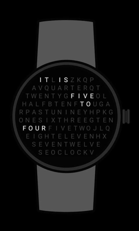 Этот уникальный циферблат сделает ваше устройство выделиться из любой другой. Экран заполнен с буквами, но только необходимые из них загораются, чтобы показать вам время!