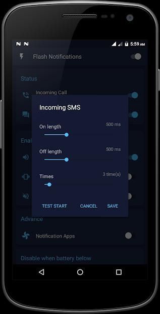 Brightest flash notification on incoming SMS.
