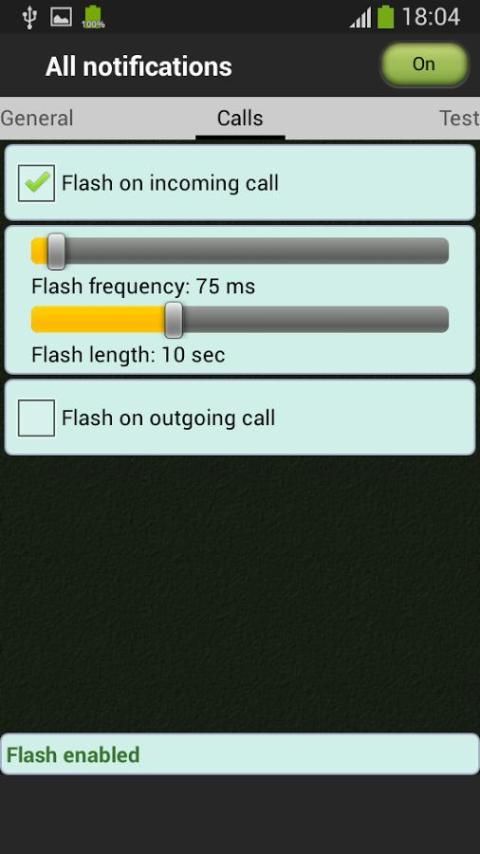 Начало работы легко, даже с интуитивно понятным меню, чтобы активировать флеш уведомления для звонков, а также для SMS.