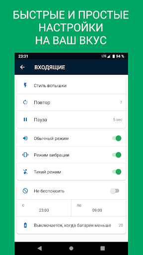 - Flash можно использовать для уведомлений из любого приложения или мессенджера