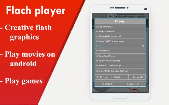 FLV Player For android support *Video Controller*, you can play, pause and seek when watching flash video. Flash Player For android support *Gamepad*(Joystick and Virtual Buttons), let you play flash games more easily using this Flash Player for Android.