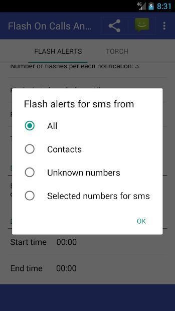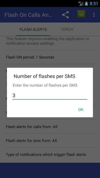 - You can change the number of flashes per SMS and notifications
