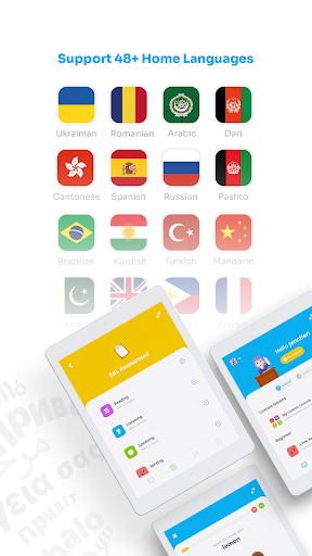 • Уникальная и доказанная эффективная комбинация уроков, игр, карточек, видео -репетиторов и функций перевода