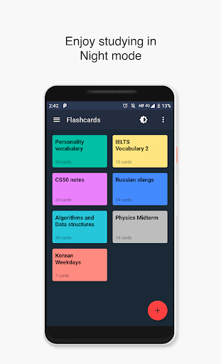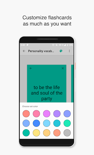 Flashcards можно отредактировать и оба пути. Просто переверните любую флешку и добавить изображение изображения или текста цвета, цвет текста тоже может быть изменен.