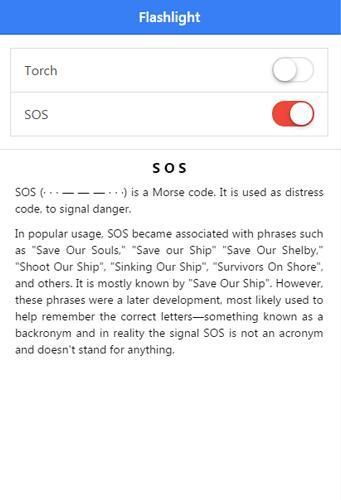 "Фонарь с SOS 'это простое приложение, которое превращает LED вашего телефона мигает в яркий фонарик, которым можно управлять с помощью простого и удобного в использовании интерфейса.