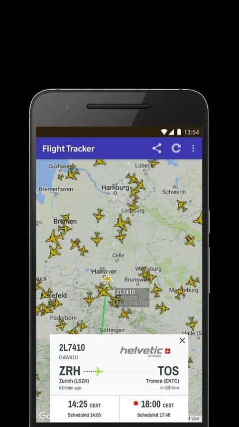 Flighttracking никогда не было так просто: Включите ваш телефон в Flight Radar Tracker отображаются в реальном времени полеты по всему миру. Это приложение является очень полезным, например, если вы хотите знать, где плоскость друга или члена семьи в настоящее время находится.