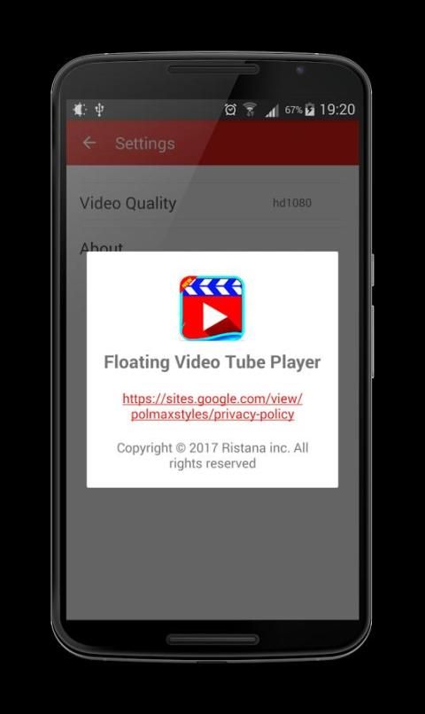 Вы можете установить по умолчанию Плавающий Видео Труба качества игрока или коммутатор Плавающий Видео Труба качества игрока, 360p, 720p, 1080p доступно