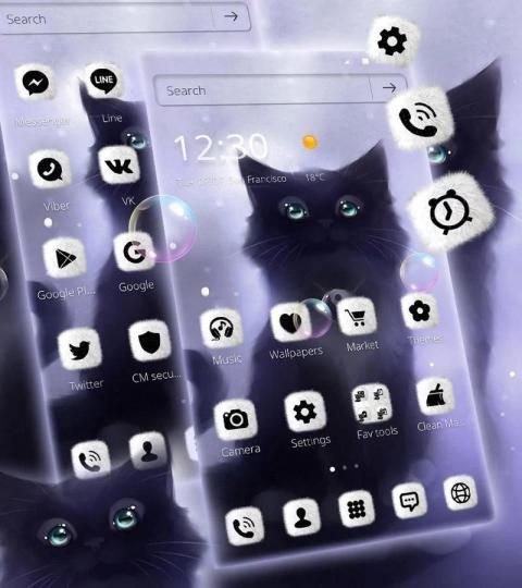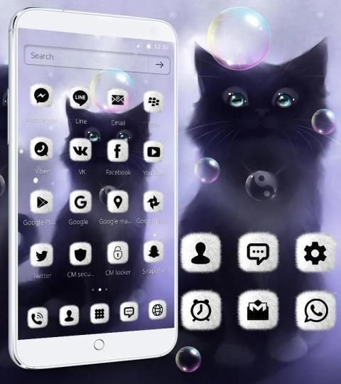 Если вы любите кошку, получите эту пушистую котенку бесплатно. Он имеет черный экран блокировки киски с пушистыми котенками. Тема черной кошки имеет милый пушистый набор значков для более 100 популярных приложений.