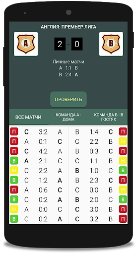 Программа случайным образом выбирает игру и показывает Вам результаты предыдущих встреч каждой из команд.