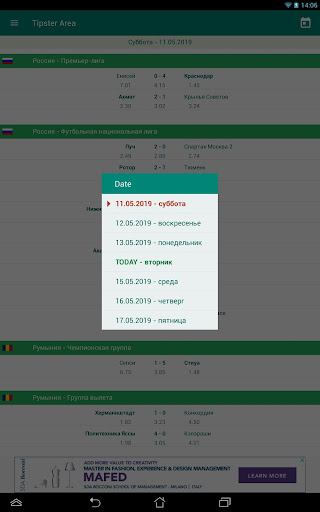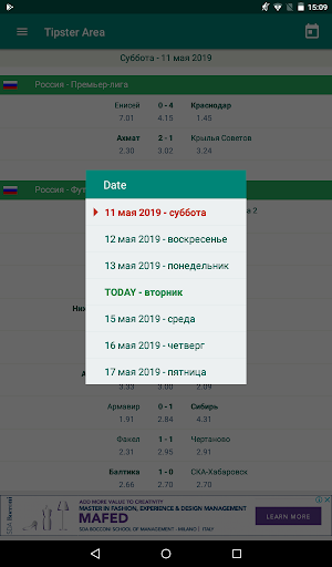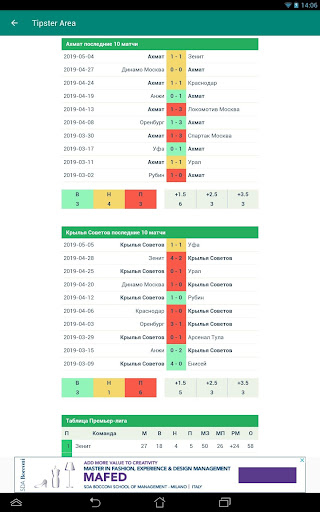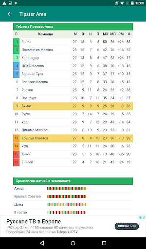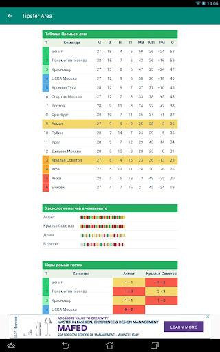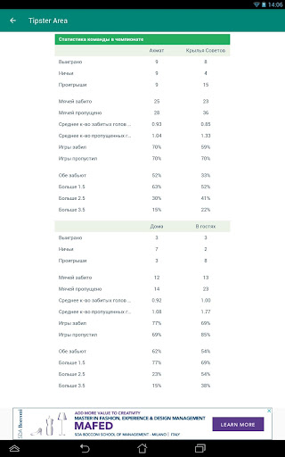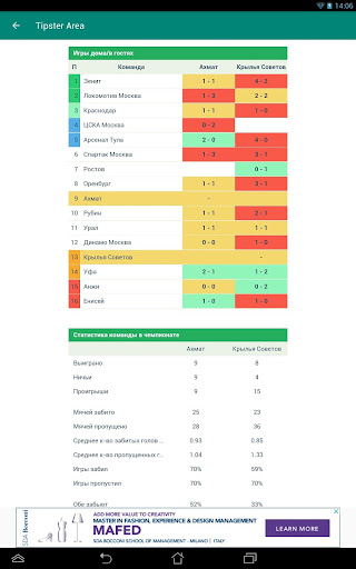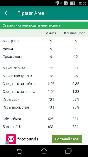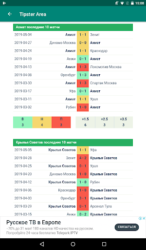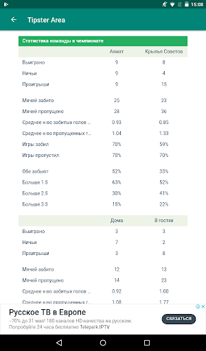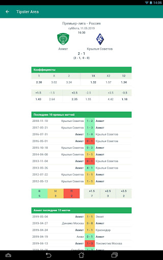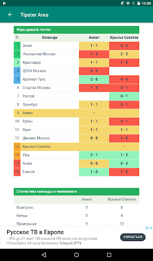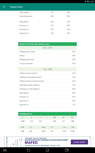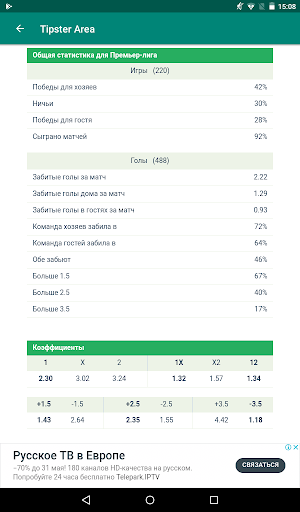 Tipster Area - приложение для футбольной статистики, которое показывает совпадения по дате, имеет очень подробную статистику и экран для сравнения по метрикам: