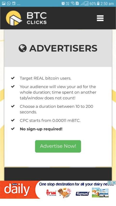 Рекламная площадка, где участники могут заработать биткойны, нажав объявления