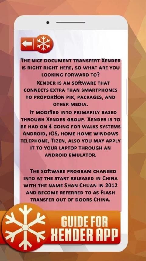 Это приложение дает вам полное руководство, советы и подсказки для xender приложения новой версии 2017 для андроид одной из лучших популярных приложений, наше приложение открывает для вас больше возможностей, чтобы узнать, как вы можете использовать xender программы для и как она становится легко использовать приложения, которые вы можете узнать с первого момента; И так, чего же ты ждешь?