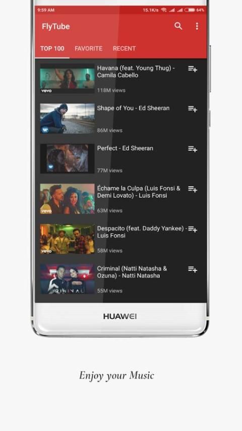 С Flytube - Бесплатный музыкальный плеер для YouTube, вы можете слушать любую музыку бесплатно или бесплатно песни в список воспроизведения музыки на YouTube и смотреть неограниченное музыкальное видео.