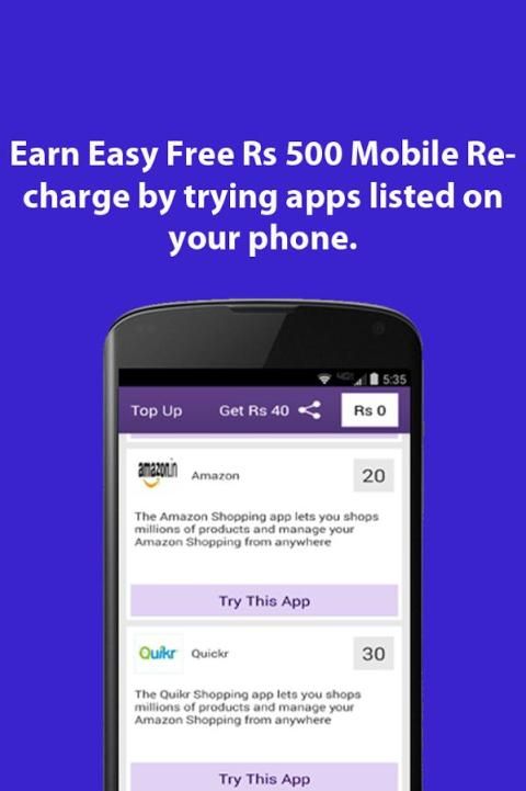 Избавьтесь от 500 рупий бесплатно 500 рупий Мобильная перезарядки приложение предоплаченного & постоплатной мобильной плана телефона с свободной перезарядка, мобильного пополнения приложение бесплатно только 500, что позволяет пополнить и зарядиться мобильный для вашего телефона бесплатно! Продолжайте говорить с неограниченным мобильных пополнений от свободных рупий 500 Мобильная Перезарядка сегодня!