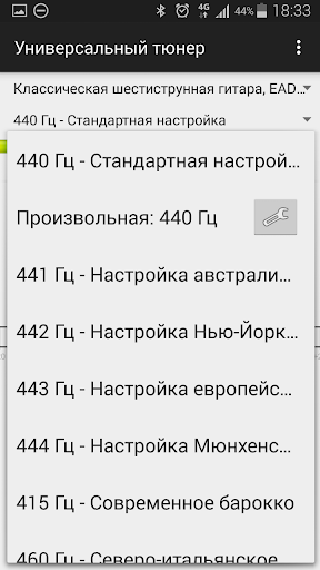 Позволяет производить настройку для иной частоты камертона "Ля", отличной от 440 Гц.