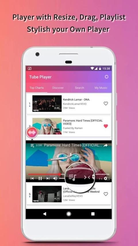 - YouTube музыкальный проигрыватель: смотреть видео в полноэкранном режиме или использовать плавающую всплывающее окно для многозадачности.