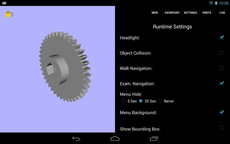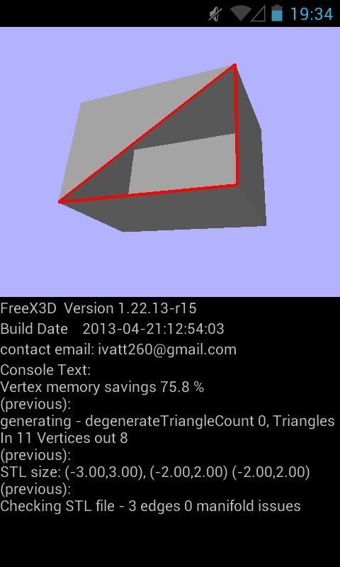 Поворот или увеличение STL файлы; X3D файлы вы можете изучить, и ходить вокруг вашего 3D сцены. Используйте один палец, чтобы повернуть или ходить, два либо зумом или двигаться вверх и вниз, в зависимости от настройки Nav.