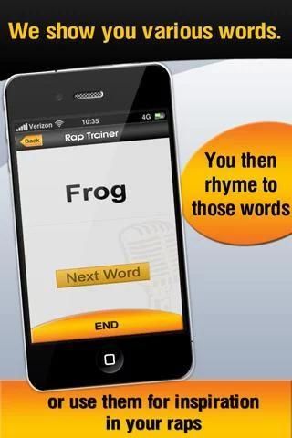 2. Приложение будет в основном случайные слова бросают на тебя. Затем вы делаете все возможное, чтобы либо рифму с этими словами как можно больше, или каким-то образом включить эти слова в вашем баров и использовать его для вдохновения. Со временем вы станете рэп фристайл Phenom!