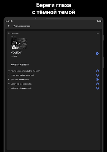 • Простой и понятный интерфейс для тех, кто учит французский с нуля.