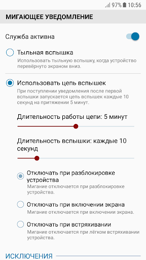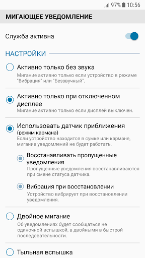 Это может пригодиться тем, (и не только) у кого на устройстве светодиод отсутствует, но есть вспышка рядом с камерой для селфи.