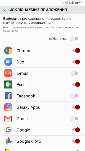 • встроенный черный список для предотвращения получения уведомлений некоторых приложений