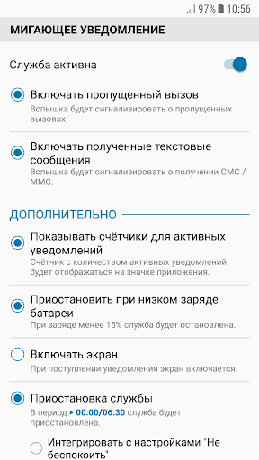 • интеграция с настройками системы Андроид "Не беспокоить"