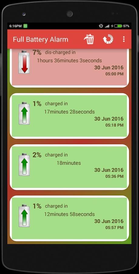 > Это также будет держать вас в курсе зарядки аккумулятора через статус уведомления. Полная батарея Smart Alarm является лучшим защитником батареи, защищая его от чрезмерных сборов и там сохраняет время работы от батарей. Просто установите это приложение в мобильном телефоне и запустить приложение. Она будет автоматически звучать сигнал тревоги после того, как батарея будет полностью заряжена или крайне низкой. Он также показывает историю состояния батареи и отобразит уведомление о состоянии батареи.