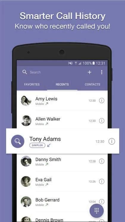 Проверьте свой контактный список друзей, сканируйте и сделайте легкие звонки на экран звонящего по телефону вашего друга и друга.