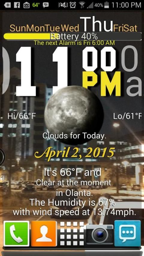 Полный экран UCCW кожи со всем в ваших руках. Теперь вы можете быть в курсе со всеми обновления информации, отображаемой на одном экране, без необходимости искать через устройство просто сделать простую задачу. Эта кожа приносит всю информацию, которая необходима, когда вы находитесь в пути. Макет дает вам: день недели, уровень заряда батареи, следующая авария, время, текущий значок состояние, и сегодняшнее состояние. Он отображает дату и текущую температуру с Привет и Ло. Как приятно было бы, чтобы иметь текущую температуру и ваше местоположение, данное вам в виде приговорен что изменения, как вы путешествуете с места на место. Это как иметь свой собственный личный погоды человек у вас под рукой. Полный Виджет экран потребует пустой панели для того, чтобы занять весь экран. Есть различные места на коже, что, когда прикосновение может запустить любое приложение на ваш выбор. По умолчанию, когда дни недели коснулся, родной календарь устройства будет запущен. Нажатие на иконку погоды запускает приложение Погода. "BeWeather Pro" является приложение по умолчанию, но вы можете пойти в настройки UCCW назначить погоды приложение по вашему выбору. Google запускает место всякий раз, когда текущее местоположение нажатии в месте текстовой области. Как здорово это иметь радиолокационное изображение вашего текущего местоположения отображается, когда текущее состояние текстовое поле коснулся. Вам нужно будет установить "MyRadar" для того, чтобы отображаться. Опять же, вы можете назначить любой радар приложение на ваш выбор. Не стесняйтесь, чтобы коснуться в другом месте виджета, чтобы обнаружить другие hotpots. Этот виджет требуется "UCCW" должен быть установлен на вашем устройстве, чтобы создать виджет на главном экране. 1.) Есть пустой дом панель экрана отсутствует. 2) Создать новый виджет. 3) Выберите UCCW 4X4 размер виджета. 5.) Выберите Full Screen Widget Skin информация. Есть несколько вещей, которые должны быть сконфигурированы в настройках UCCW в. "Авто расположение и расположение Показать короткий" должны быть проверены. Все остальные настройки можно установить на вашей спецификации. Для того, чтобы оптимизировать производительность виджета, убедитесь, что ваши услуги местоположение включена на устройстве и настроить интервал обновления "", чтобы сохранить власть тесто.