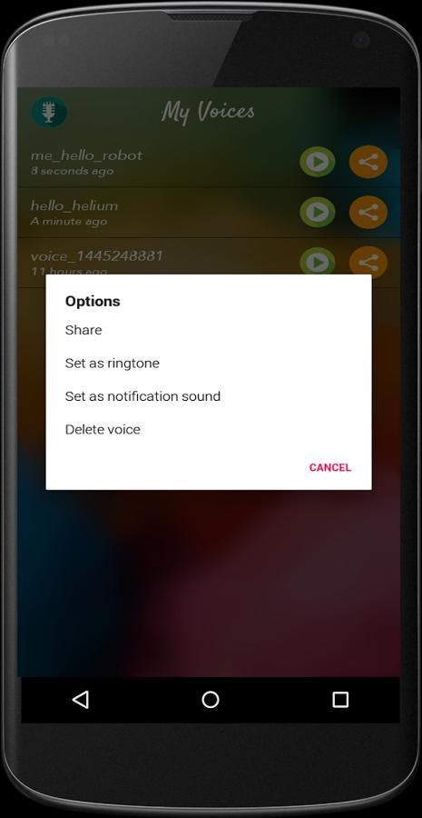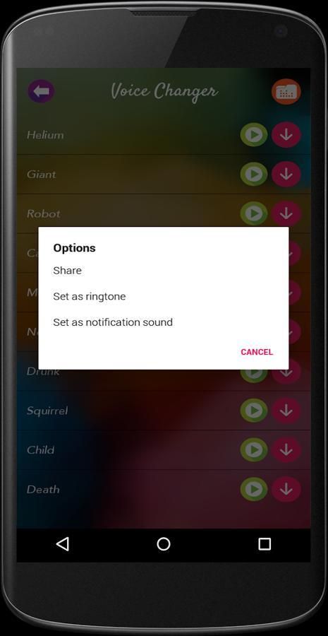 С Смешные Voice Changer, вы можете записать свой голос и протестировать различные эффекты для предварительного просмотра перед сохранением. Вы можете установить записанный звук в качестве мелодии звонка, уведомления, сигнализации и звукового сообщения.