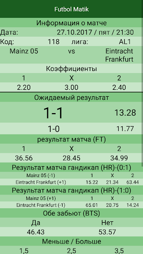 FutbolMatik - это простое в использовании приложение, которое оценивает предстоящие соответствия, используя результаты прошлых матчей