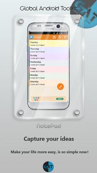 GAT - Global Android Toolkit is an all-in-one app and is half the size of a common "standalone tool" application like compass, translator or a ringtone maker app. This way you'll save a lot of disk space, time and frustration searching for all the daily tools you need!