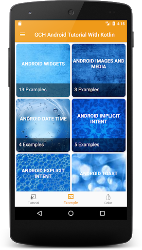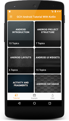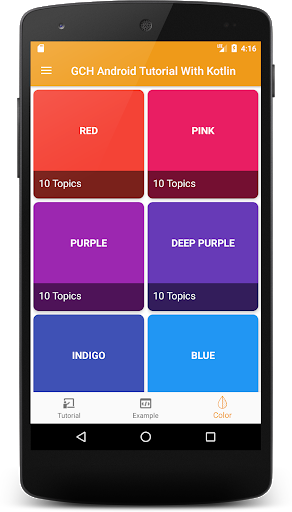 Android Tutorials with kotlin, is based on Android Learning on mobile devices. Provide Tutorial, Souce code, live Example, Promoting E-learning and Offline Tutorial.