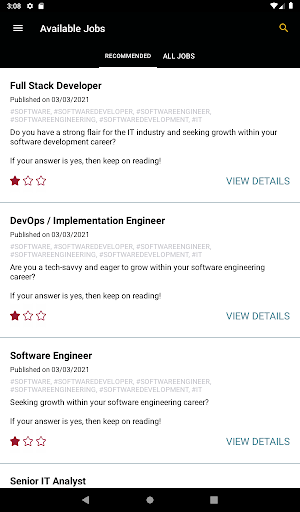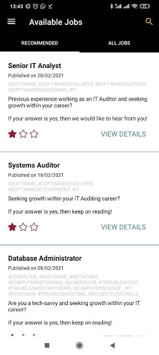 с широким спектром рабочих мест из разных отраслей, мы уверены, что вы найдете работу для вас.В приложении есть две функции, чтобы облегчить процесс;Доступны и рекомендуемые рабочие места.Все доступные задания перечислены под этим разделе.В то время как работа, которые мы рекомендуем на основе вашего профиля будут перечислены в соответствии с рекомендуемыми заданиями.