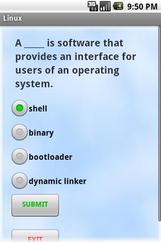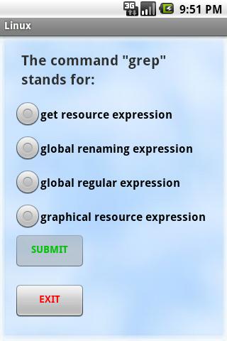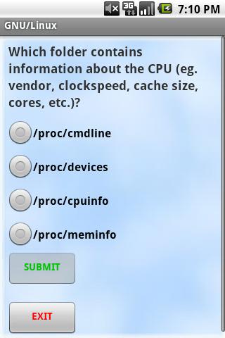 This application was created as a simple review of basic Linux commands, terms and history.The intended audience is High School to Undergraduate students, professionals refreshing their knowledge, and non-native english speakers trying to improve their English technical vocabulary.This is meant to be a study aide and not an entertainment application. These applications were originally created for some students preparing for an exam.The developer quickly realized that other people may be interested in reviewing their knowledge too.Most questions are considered common knowledge and usually have been cross-referenced with at least two different sources.Please send suggestions for improvement and other comments to Mark at m.r.droids2012@gmail comThanks!Features:* Questions and possible answers are shuffled randomly* Play offline* Unlimited Play* No advertisements* No registration necessary* No device permissions requiredThis content is released under the Creative Commons 3.0 Attribution License available at:http://creativecommons.org/licenses/by/3.0/legalcodeKeywords:free, trivia, game, quiz, test, prep, certification, technical qualification, Linux, operating system software, COSC, CS, computer science, IT, information technology CIS, CBIS, computer-based information system,Sapere Aude!--Horace