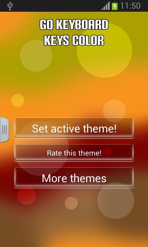 Prepare your smartphone for a color delight with our latest: GO KEYBOARD KEYS COLOR! DOWNLOAD GO Keyboard Keys Color now and take these warm shades with you everywhere! - To install, just follow the 3 steps: open after downloading, press "Set as Active Theme" and select the theme from the following page! - The amazing HD screenshots we added will show you just how great this theme will look on your phone keyboard! - This theme uses GO Keyboard, so if you do not have it installed, you will be redirected to a download page! - The menus for this theme come with 48 different language translations! Take the time to RATE and COMMENT after you install, your opinion will help us improve our work! And do not hesitate to contact us at treicraiapps@gmail.com with any suggestions or questions you have! This theme uses a free font which can be found at http://www.1001fonts.com/carbon-font.html To support further development of high quality themes, this app may show some ads that do not interfere with the app's functionality.