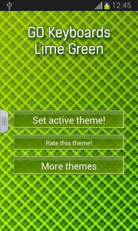 We have prepared a very stylish theme for your keyboard with our latest GO KEYBOARDS LIME GREEN! DOWNLOAD our theme now and turn your phone into a fashion accessory! - To install, just follow the 3 steps: open after downloading, press "Set as Active Theme" and select the theme from the following page! - The amazing HD screenshots we added will show you just how great this theme will look on your phone keyboard! - This theme uses GO Keyboard, so if you do not have it installed, you will be redirected to a download page! - The menus for this theme come with 48 different language translations! Take the time to RATE and COMMENT after you install, your opinion will help us improve our work! And do not hesitate to contact us at treicraiapps@gmail.com with any suggestions or questions you have! This theme uses a free font which can be found at http://fontfabric.com/kelson-sans/ To support further development of high quality themes, this app may show some ads that do not interfere with the app's functionality.